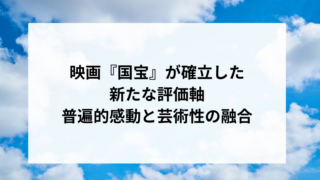 映画映画『国宝』が確立した新たな評価軸:普遍的感動と芸術性の融合 はじめに 映画『国宝』は、吉田修一氏の同名小説を原作に、李相日監督が手がけた壮大な人間ドラマであり、日本が誇る伝統芸能である歌舞伎の世界を深く掘り下げた傑作として、公開以来、国内外で非常に高い評価を獲得し続けている作品である。任侠の家に生ま...2025.09.17映画