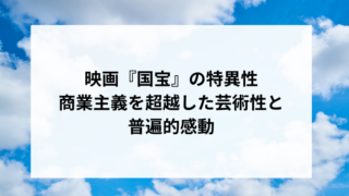 映画映画『国宝』の特異性:商業主義を超越した芸術性と普遍的感動 はじめに 映画『国宝』は、吉田修一氏の同名小説を原作に、李相日監督が手がけた壮大な人間ドラマであり、日本が誇る伝統芸能である歌舞伎の世界を深く掘り下げた傑作として、公開以来、国内外で非常に高い評価を獲得し続けている作品である。任侠の家に生ま...2025.09.19映画