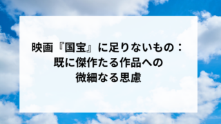 映画映画『国宝』に足りないもの:既に傑作たる作品への微細なる思慮 はじめに 映画『国宝』は、吉田修一氏の同名小説を原作に、李相日監督が手がけた壮大な人間ドラマであり、日本が誇る伝統芸能である歌舞伎の世界を深く掘り下げた傑作として、公開以来、国内外で非常に高い評価を獲得し続けている作品である。任侠の家に生ま...2025.09.21映画