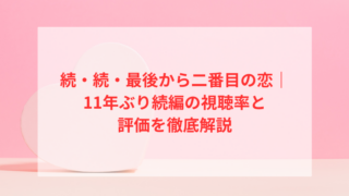 ドラマ続・続・最後から二番目の恋|11年ぶり続編の視聴率と評価を徹底解説 11年ぶりの続編として月9枠に登場 2025年4月14日、フジテレビ系月9枠にて「続・続・最後から二番目の恋」が放送開始されました。本作は2012年の第1期、2014年の第2期に続く、シリーズ第3期となる作品です。前作から実に11年の時を...2026.04.10ドラマ