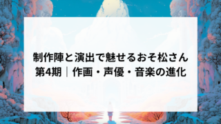 アニメ制作陣と演出で魅せるおそ松さん 第4期|作画・声優・音楽の進化 制作陣と演出面から見るおそ松さん 第4期の魅力 「おそ松さん 第4期」の成功は、優れた脚本やキャラクター造形だけでなく、制作陣の高い技術力と情熱によって支えられています。監督、脚本家、アニメーター、声優、音楽スタッフなど、多くのクリエイタ...2025.10.20アニメ未分類