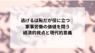 ドラマ逃げるは恥だが役に立つ|家事労働の価値を問う経済的視点と現代的意義 「逃げるは恥だが役に立つ」が問う家事労働の価値|見えない労働を可視化する経済的視点 TBS系列で放送された「逃げるは恥だが役に立つ」(公式サイト:)が社会現象となった理由の一つに、家事労働を「仕事」として明確に位置づけた点があります。主人...2025.11.13ドラマ未分類