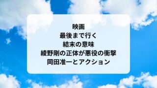 映画最後まで行く日本版結末をネタバレ!ラストの意味と正体!綾野剛のアクションは下手? 映画「最後まで行く」の日本版の結末の意味がわからなかった、続編があるような終わり方で気になった方へネタバレします。綾野剛さんが演じる矢崎の正体など、映画の結末を解説します。藤井道人監督の作品に多く出演している綾野剛さんは、今まで正義感が強い...2022.11.252023.04.26映画