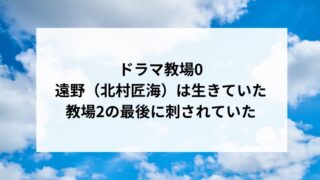23年4月ドラマドラマ教場0遠野(北村匠海)は生きていた!教場2の最後の結末をネタバレ ドラマ「風間公親教場0」に遠野(北村匠海)が出演します、遠野が生きていた!教場2(2021年)の結末で遠野は犯人に刺されました。遠野は死んだ?教場0に北村匠海さんは出演するのか、話題になっていました。教場2の最後の結末を振り返ります。 ...2022.11.102023.04.2623年4月ドラマドラマ