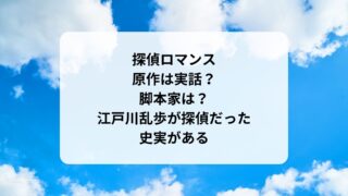 2023年1月ドラマ探偵ロマンス原作は実話?脚本家は?史実で江戸川乱歩が探偵だった NHKドラマ「探偵ロマンス」の原作は実話なの?脚本家は誰?江戸川乱歩が探偵になった史実があったことをまとめます。主演は濱田岳さんで、大人気だった朝ドラ「カムカムエヴリバディ」のスタッフが制作しています。 第2話と3話の大切なシーンで、上白...2022.11.012023.04.262023年1月ドラマ