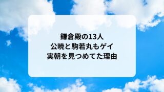 大河ドラマ鎌倉殿の13人公暁と駒若丸もゲイ!史実ではなく草燃えるで描かれた!実朝を見つめてた理由はそっち? 鎌倉殿の13人で実朝がゲイだった展開に驚きましたが、史実ではありません。公暁(こうぎょう・寛一郎)と駒若丸がゲイ関係だったという展開もあります。ゲイ同士は見たらわかると言いますから、公暁が実朝を見つめていたのは、恨みではなく実はそっちだった...2022.10.122023.04.26大河ドラマ