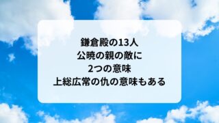 大河ドラマ鎌倉殿の13人公暁の親の敵に2つの意味!上総広常の仇の意味もある! 鎌倉殿の13人で、3代目鎌倉殿の実朝を暗殺する公暁(こうぎょう)が言った「親の敵」には2つの意味があった!公暁のキャストが佐藤浩市さんの実の息子の寛一郎さんと知った時に「キャスティングすごすぎる!!!」と衝撃を受けました。 そこで、公暁(...2022.10.102023.04.26大河ドラマ