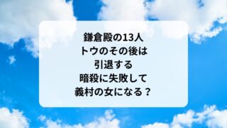 大河ドラマ鎌倉殿の13人四代目は三寅で2歳!政子が尼将軍で鎌倉殿になると言い出す! 鎌倉殿の13人で、四代目鎌倉殿になるのは誰?実朝が鎌倉殿を辞めて、京から養子をとると言ったため、義時や政子ともめました。実朝と公暁が暗殺されて亡くなったため、三寅(のちの藤原頼経)に決まります。しかし、三寅はまだ2歳なので、政子が「鎌倉殿に...2022.10.112025.03.14大河ドラマ