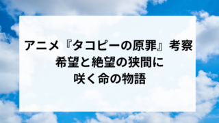 アニメアニメ『タコピーの原罪』考察 - 希望と絶望の狭間に咲く命の物語 はじめに 2022年に「少年ジャンプ+」にて連載され、その衝撃的な内容と深いテーマ性で大きな反響を呼んだ漫画作品『タコピーの原罪』。そのアニメ化は、多くのファンにとって待望の出来事であり、映像作品として改めてその魅力を再発見する機会となった...2025.08.15アニメ動画配信サービス