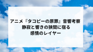アニメアニメ『タコピーの原罪』音響考察 - 静寂と響きの狭間に宿る感情のレイヤー はじめに アニメ作品において、音響は単なる「音の演出」にとどまらず、登場人物の内面を掘り下げ、視聴者の感情を導く重要な芸術要素である。特に、極めて繊細かつ深刻な社会的テーマを取り扱った『タコピーの原罪』においては、音響の持つ力が物語の本質に...2025.08.29アニメ動画配信サービス