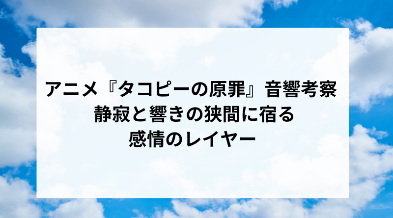 音響とは見えない芸術である。しかし、それは確実に視聴者の感情の奥底に触れ、物語の深層を開示する力を持っている。『タコピーの原罪』はそのことを、静かに、しかし確かに私たちに教えてくれる作品である。