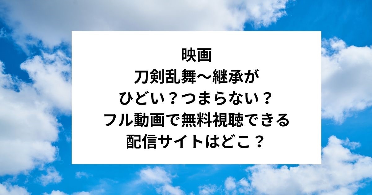 - 映画「刀剣乱舞~継承」を見れる配信サイト!無料でフル動画をスマホでも見られる方法あります
